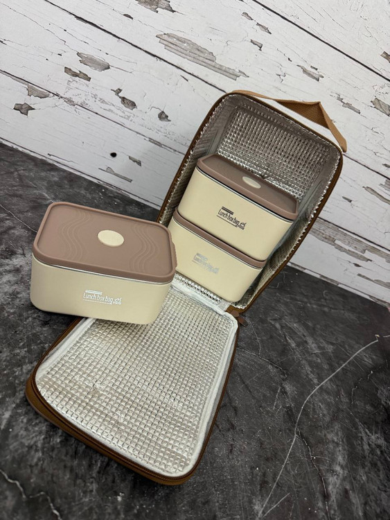 ظرف غذا (لانچ باکس) ۳ تیکه مربعی با کیف عایق